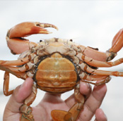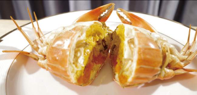 每逢炎夏,青母蟹會在產(chǎn)卵時棲身于淺灘河畔,在陽光的照射下,體內(nèi)的蟹膏分解成金黃色的油脂,然后滲透到體內(nèi)的各個部分,使得整只蟹晶瑩剔透、充滿黃油,因此被稱為黃油蟹。